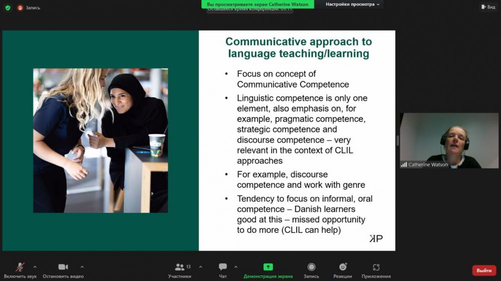 У межах співпраці Кетрін Вотсон висвітлила особливості системи освіти в Данії та перспективні підходи, що застосовують європейські університети в галузі викладання іноземних мов. Кетрін Вотсон розповіла про нові методики, що дозволяють ефективно навчати учнів і студентів однієї й більше іноземних мов, заохочувати молодь до активної комунікації в глобальному просторі.